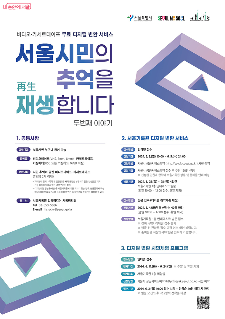 서울기록원 1층 안내데스크로 방문하면 접수할 수 있습니다.