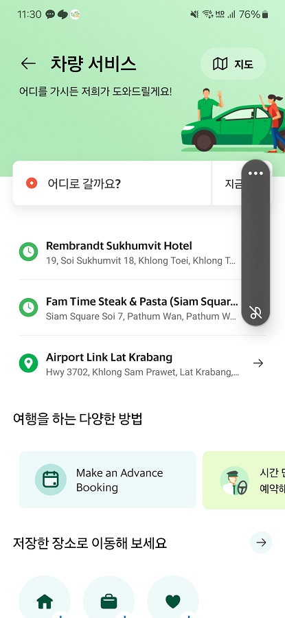 동남아에서는 그랩과 볼트가 있습니다.
