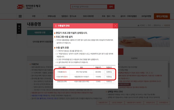수동설치 안내가 뜰 겁니다. 필수라는 프로그램을 설치하시고