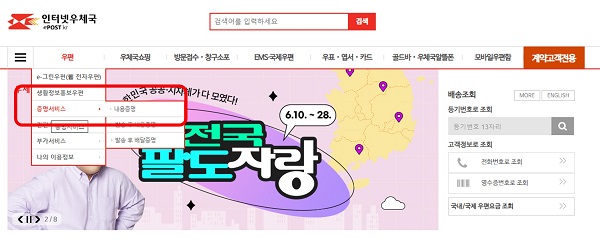 흔히 아시는 우체국에서 직접 보내는 방법과 온라인으로 보내는 방법입니다.