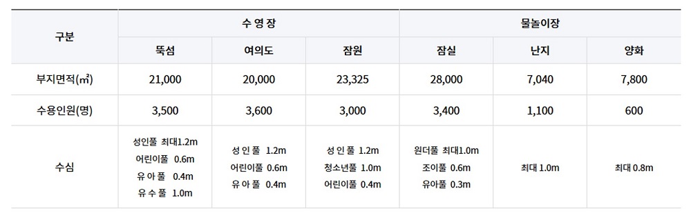 이번에 개장하는 한강 수영장과 물놀이장은 총 6곳으로