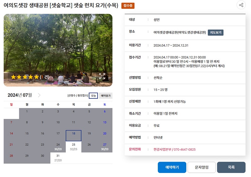 여의샛강생태공원 샛숲 런치요가 수, 목요일반
