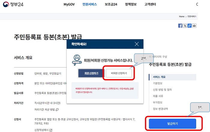 간단한 서류라서 비회원으로도 발급이 가능하다는 얘기죠. 일단 비회원으로 발급받아볼게요.