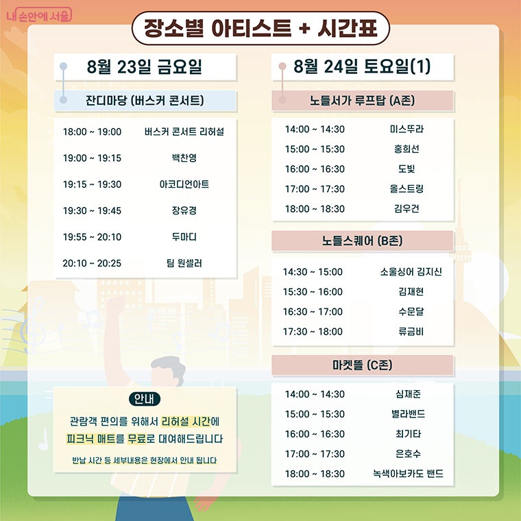 한강 노들섬에서 8월 23일부터 25일까지 3일간 ‘서울버스커페스티벌 2024’가 개최됩니다.