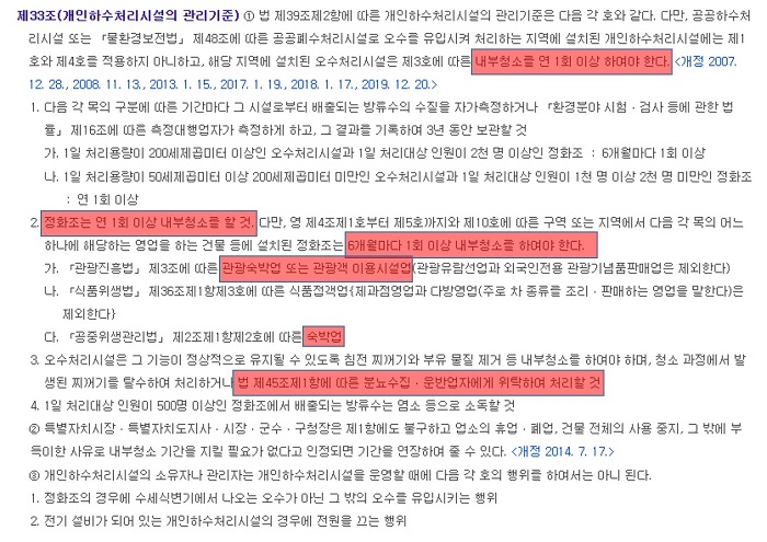 1년에 한번씩 정화조 청소는 의무화되어 있고