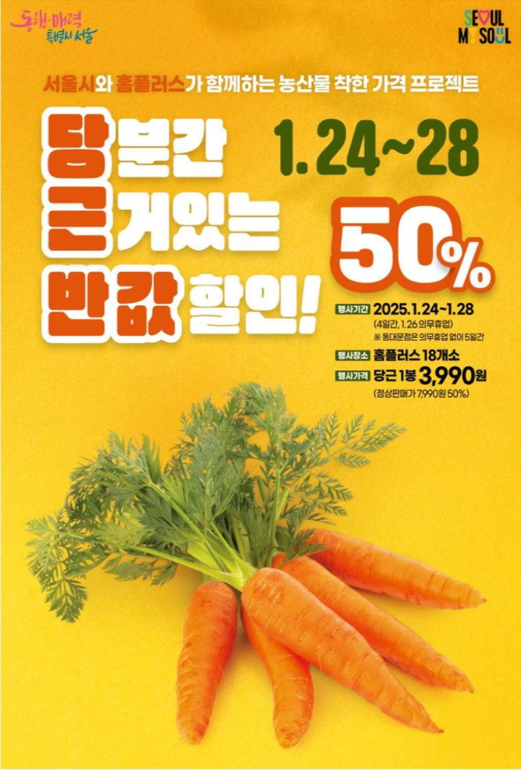 ○ 행사가격 : 당근 1봉 3,990원 (정상판매가 7,990원 50%)