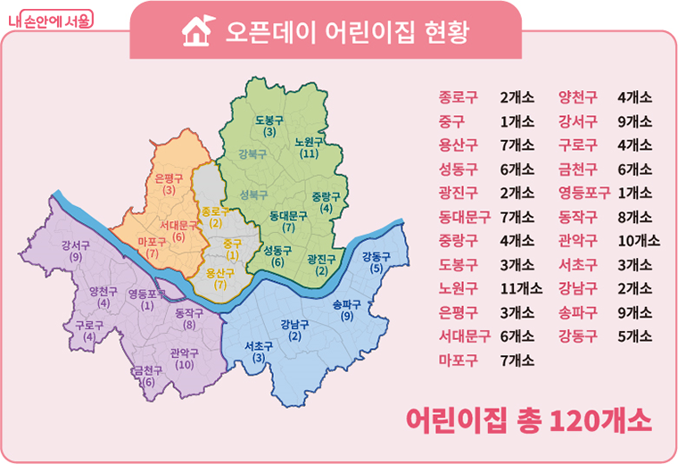 어린이집 명단과 어린이집별 세부 진행시간은 서울시 보육포털 누리집에서 확인하실 수 있어요.