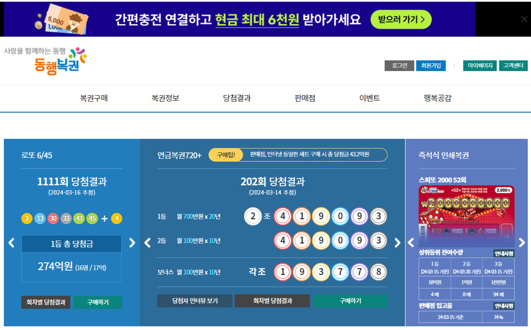 저는 인터넷으로 로또부터 연금복권까지 “동행복권”에서 삽니다.