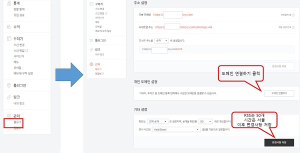 다시 티스토리로 돌아와서 '관리' > '블로그' 로 들어가면