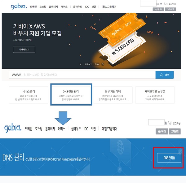 다음으로 DSN설정에서 내 도메인을 체크하고 DNS 설정을 클릭합니다.