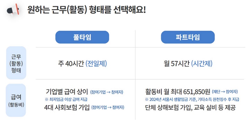 ‘파트타임형’과 ‘풀타임형’으로 나누어 채용합니다.
