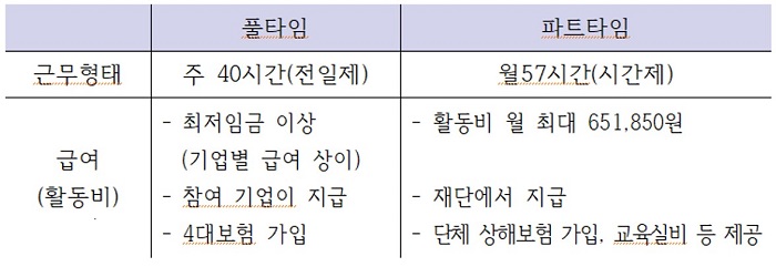 풀타임형은 채용기업별로 다르지만 최저임금 이상의 급여가 지급됩니다.