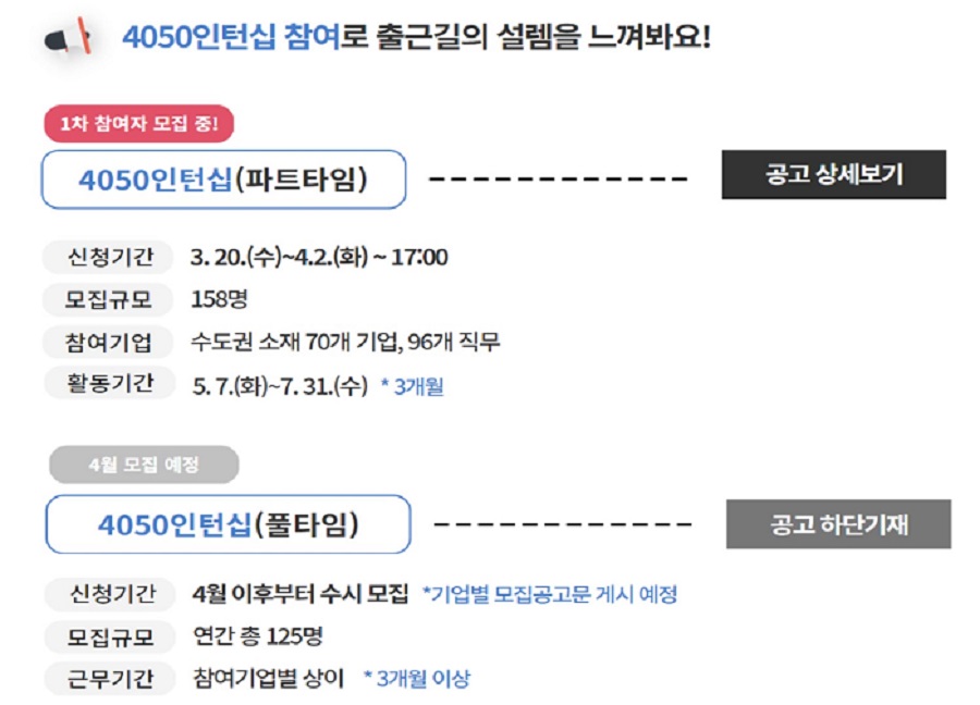 풀타임 인턴십은 4월부터 “50플러스포털”에서 상시 모집한다고 합니다.