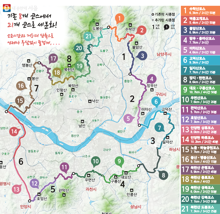 ‘서울둘레길 2.0’은 금년 초 코스를 8개에서 21개로 세분화하고