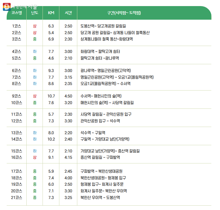 ● 자세한 사항은 “서울둘레길”에서 확인하실 수 있습니다.