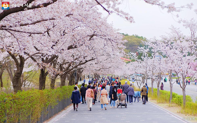 800미터에 이르는 왕벚나무 터널길을 걷는