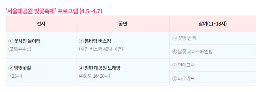 어린이 가족 봄나들이 정보 서울대공원 어린이대공원 벚꽃축제