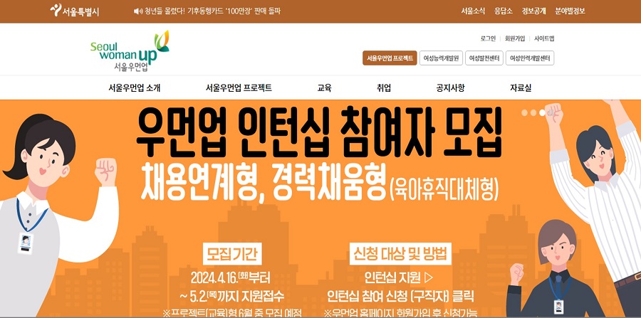 서울시의 경력단절 여성 지원 사업인 ‘서울우먼업 인턴십’을 소개합니다.