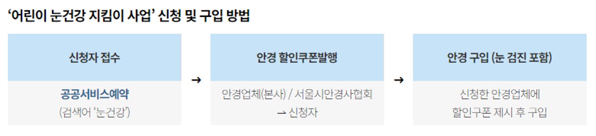 서울시에서 초등학생 이하 어린이를 위해 시력검사와 안경 구입 비용 지원합니다.