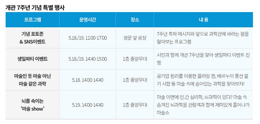 서울시립과학관에서 개관 7주년을 맞아