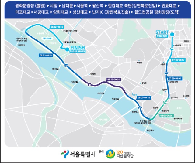 광화문광장(출발지) ~ 월드컵공원 평화광장(도착지)까지 통제하며